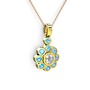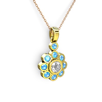 Akuamarin ve pırlanta 14 ayar altın kolye (0.5 karat, 40 cm rose altın rolo zincir)
