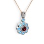 Akuamarin ve rodolit garnet 14 ayar beyaz altın kolye (40 cm gümüş rolo zincir)