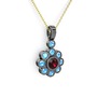 Akuamarin ve rodolit garnet 925 ayar siyah rodyum kaplama gümüş kolye (40 cm altın rolo zincir)