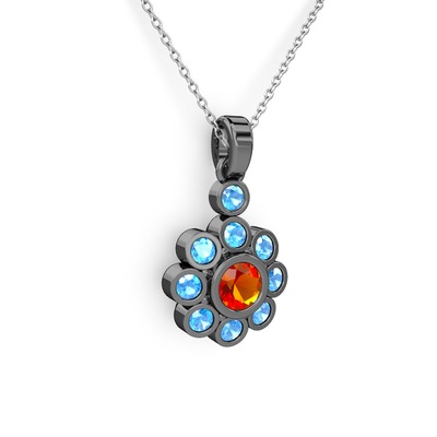 Akuamarin ve sitrin 925 ayar siyah rodyum kaplama gümüş kolye (40 cm beyaz altın rolo zincir)