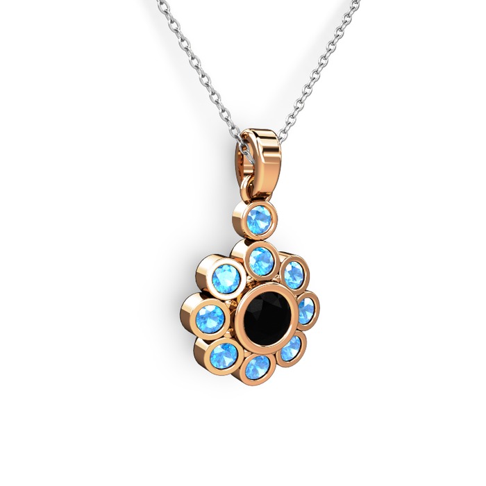 Akuamarin ve siyah zirkon 8 ayar rose altın kolye (40 cm gümüş rolo zincir)
