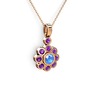Ametist ve akuamarin 925 ayar rose altın kaplama gümüş kolye (40 cm gümüş rolo zincir)