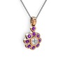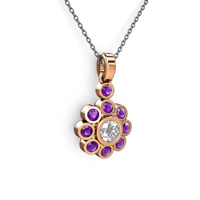Ametist ve beyaz zirkon 8 ayar rose altın kolye (40 cm gümüş rolo zincir)