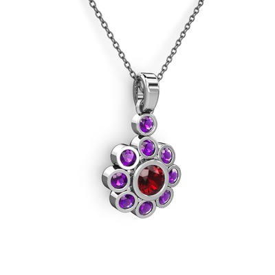 Ametist ve garnet 8 ayar beyaz altın kolye (40 cm gümüş rolo zincir)