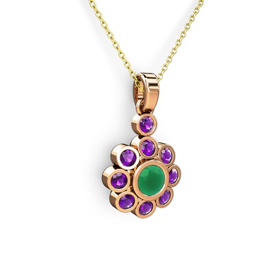 Ametist ve kök zümrüt 8 ayar rose altın kolye (40 cm altın rolo zincir)