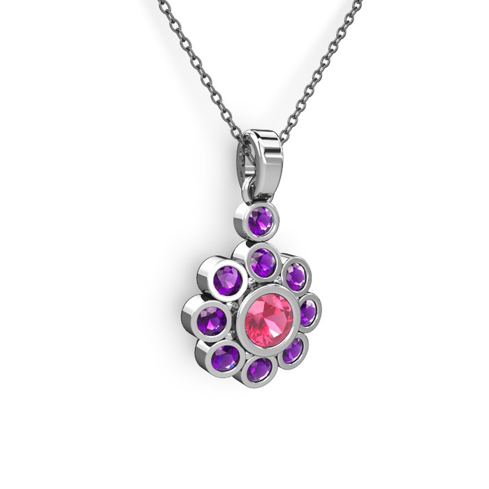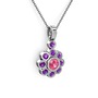 Ametist ve pembe kuvars 8 ayar beyaz altın kolye (40 cm gümüş rolo zincir)
