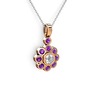 Ametist ve pırlanta 14 ayar rose altın kolye (0.5 karat, 40 cm gümüş rolo zincir)