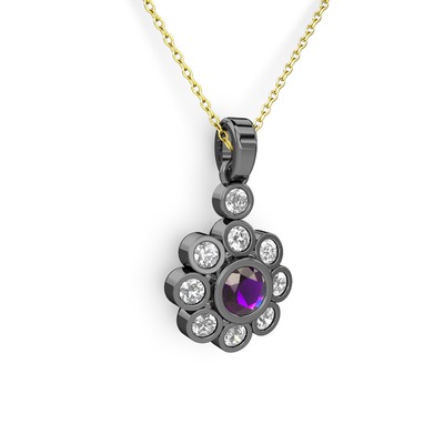 Beyaz zirkon ve ametist 925 ayar siyah rodyum kaplama gümüş kolye (40 cm altın rolo zincir)