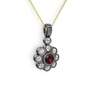 Beyaz zirkon ve rodolit garnet 925 ayar siyah rodyum kaplama gümüş kolye (40 cm altın rolo zincir)
