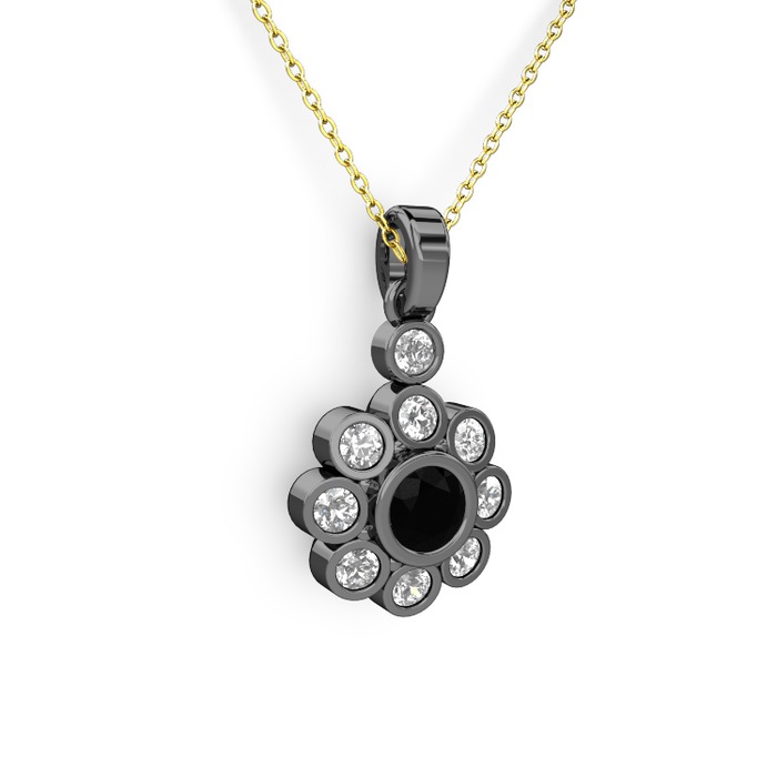 Beyaz zirkon ve siyah zirkon 925 ayar siyah rodyum kaplama gümüş kolye (40 cm altın rolo zincir)
