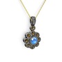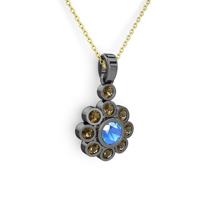 Dumanlı kuvars ve akuamarin 925 ayar siyah rodyum kaplama gümüş kolye (40 cm altın rolo zincir)