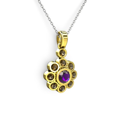 Dumanlı kuvars ve ametist 925 ayar altın kaplama gümüş kolye (40 cm beyaz altın rolo zincir)