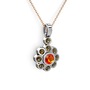 Dumanlı kuvars ve sitrin 8 ayar beyaz altın kolye (40 cm rose altın rolo zincir)