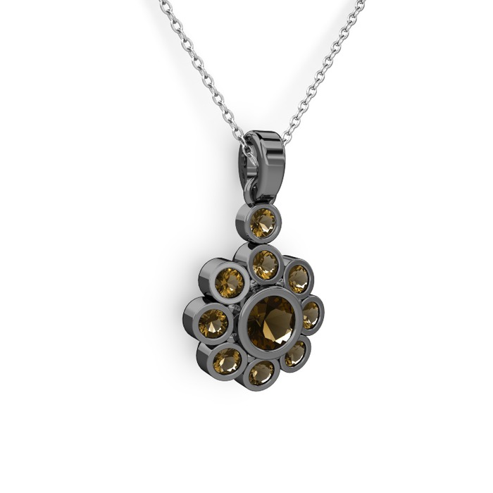 Dumanlı kuvars 925 ayar siyah rodyum kaplama gümüş kolye (40 cm beyaz altın rolo zincir)