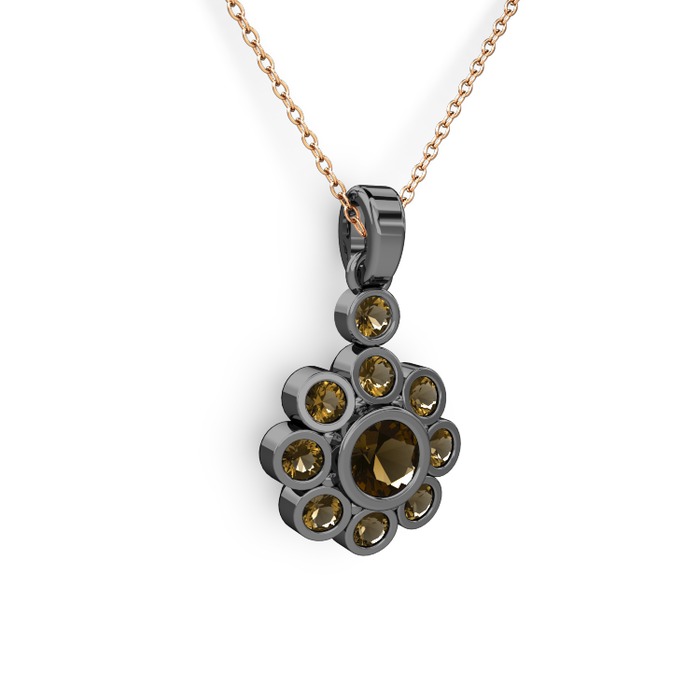 Dumanlı kuvars 925 ayar siyah rodyum kaplama gümüş kolye (40 cm rose altın rolo zincir)