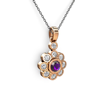 Elmas ve ametist 18 ayar rose altın kolye (0.54 karat, 40 cm gümüş rolo zincir)