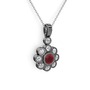 Elmas ve kök yakut 925 ayar siyah rodyum kaplama gümüş kolye (0.54 karat, 40 cm gümüş rolo zincir)