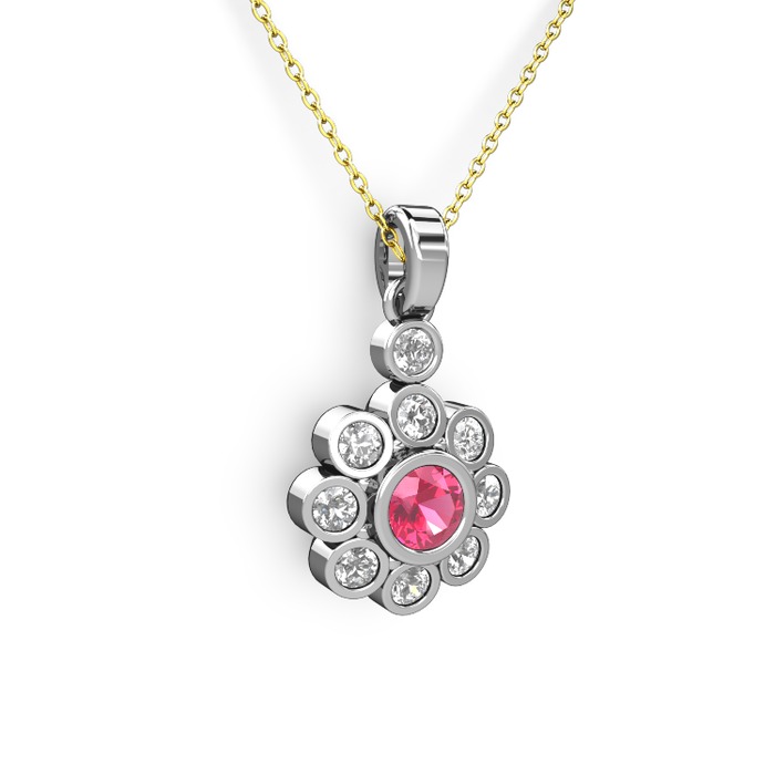 Elmas ve pembe kuvars 8 ayar beyaz altın kolye (0.54 karat, 40 cm altın rolo zincir)