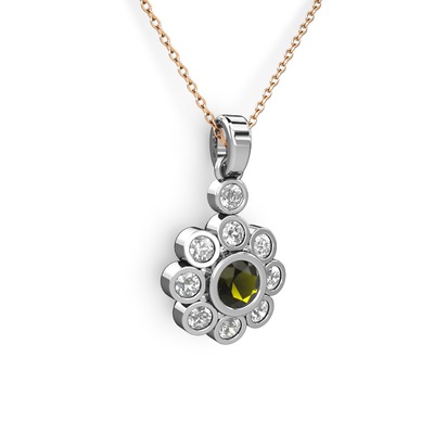 Elmas ve peridot 14 ayar beyaz altın kolye (0.54 karat, 40 cm gümüş rolo zincir)