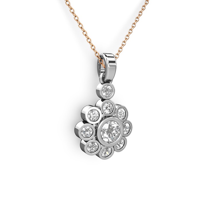 Elmas ve pırlanta 8 ayar beyaz altın kolye (1.04 karat, 40 cm rose altın rolo zincir)