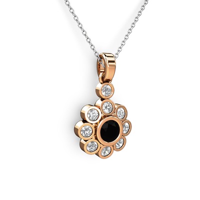 Elmas ve siyah zirkon 14 ayar rose altın kolye (0.54 karat, 40 cm beyaz altın rolo zincir)
