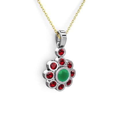 Garnet ve kök zümrüt 14 ayar beyaz altın kolye (40 cm altın rolo zincir)