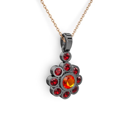 Garnet ve sitrin 925 ayar siyah rodyum kaplama gümüş kolye (40 cm rose altın rolo zincir)