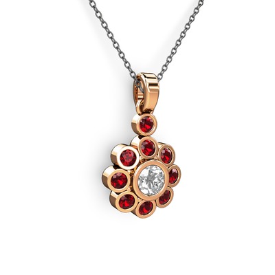 Garnet ve swarovski 14 ayar rose altın kolye (40 cm gümüş rolo zincir)