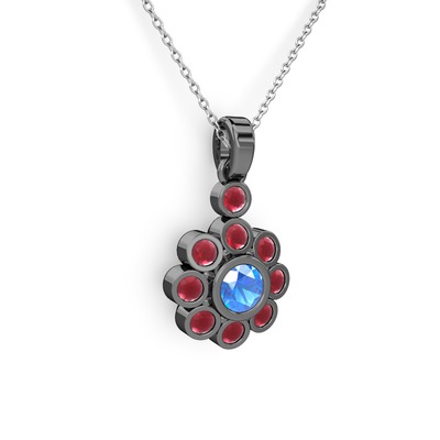 Kök yakut ve akuamarin 925 ayar siyah rodyum kaplama gümüş kolye (40 cm beyaz altın rolo zincir)