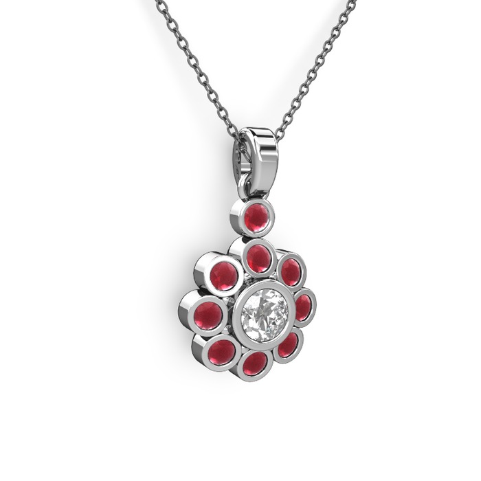 Kök yakut ve elmas 8 ayar beyaz altın kolye (0.5 karat, 40 cm gümüş rolo zincir)