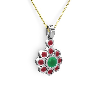 Kök yakut ve kök zümrüt 925 ayar gümüş kolye (40 cm altın rolo zincir)