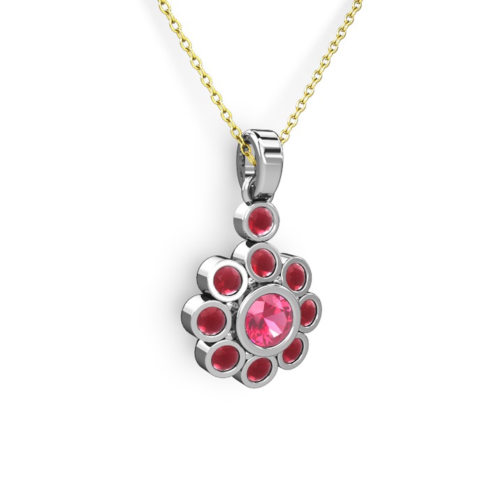 Kök yakut ve pembe kuvars 14 ayar beyaz altın kolye (40 cm altın rolo zincir)