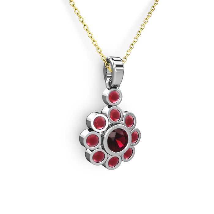 Kök yakut ve rodolit garnet 18 ayar beyaz altın kolye (40 cm gümüş rolo zincir)