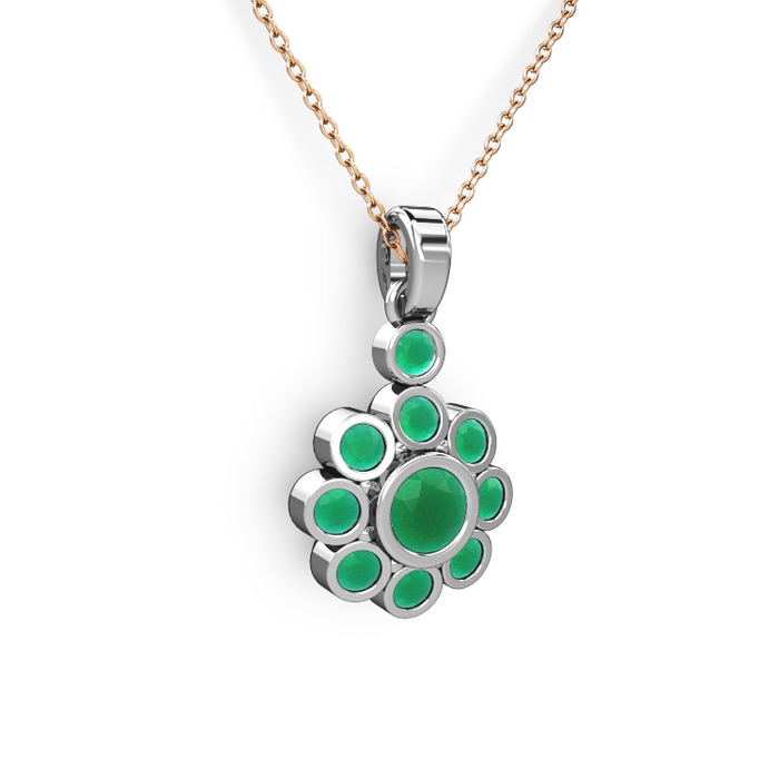 Kök zümrüt 14 ayar beyaz altın kolye (40 cm gümüş rolo zincir)