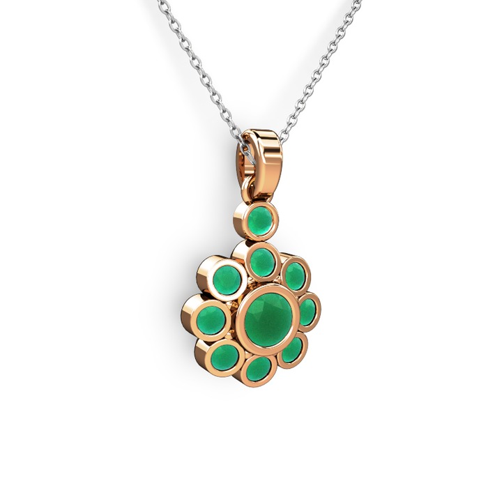 Kök zümrüt 14 ayar rose altın kolye (40 cm beyaz altın rolo zincir)