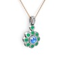 Kök zümrüt ve akuamarin 18 ayar beyaz altın kolye (40 cm rose altın rolo zincir)