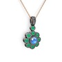 Kök zümrüt ve akuamarin 925 ayar siyah rodyum kaplama gümüş kolye (40 cm rose altın rolo zincir)