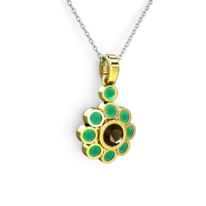 Kök zümrüt ve dumanlı kuvars 14 ayar altın kolye (40 cm beyaz altın rolo zincir)