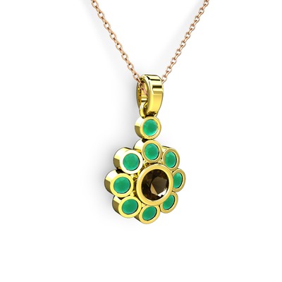 Kök zümrüt ve dumanlı kuvars 925 ayar altın kaplama gümüş kolye (40 cm rose altın rolo zincir)