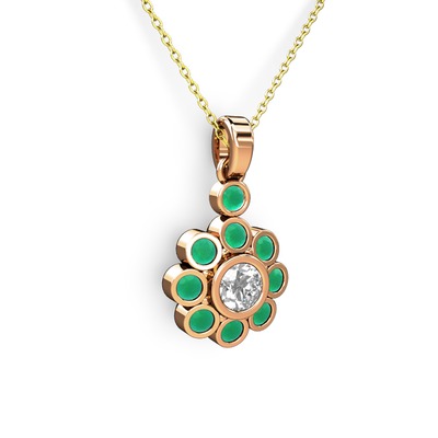 Kök zümrüt ve elmas 14 ayar rose altın kolye (0.5 karat, 40 cm altın rolo zincir)