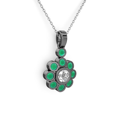 Kök zümrüt ve elmas 925 ayar siyah rodyum kaplama gümüş kolye (0.5 karat, 40 cm beyaz altın rolo zincir)