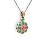 Kök zümrüt ve pembe kuvars 18 ayar rose altın kolye (40 cm gümüş rolo zincir)