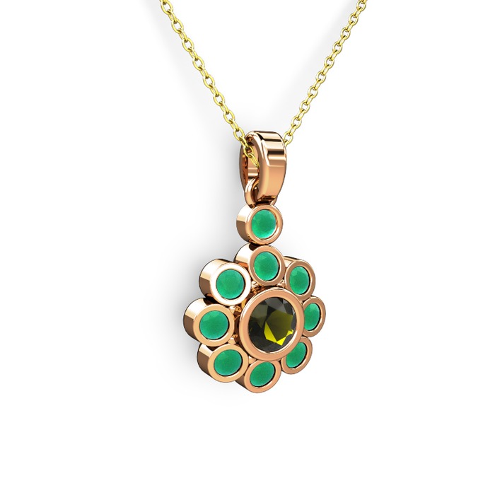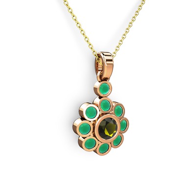 Kök zümrüt ve peridot 925 ayar rose altın kaplama gümüş kolye (40 cm altın rolo zincir)