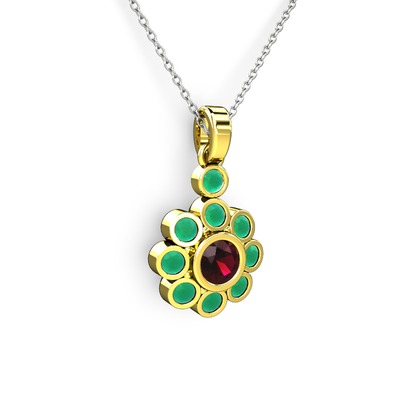 Kök zümrüt ve rodolit garnet 14 ayar altın kolye (40 cm beyaz altın rolo zincir)