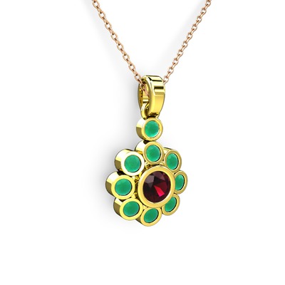 Kök zümrüt ve rodolit garnet 925 ayar altın kaplama gümüş kolye (40 cm rose altın rolo zincir)
