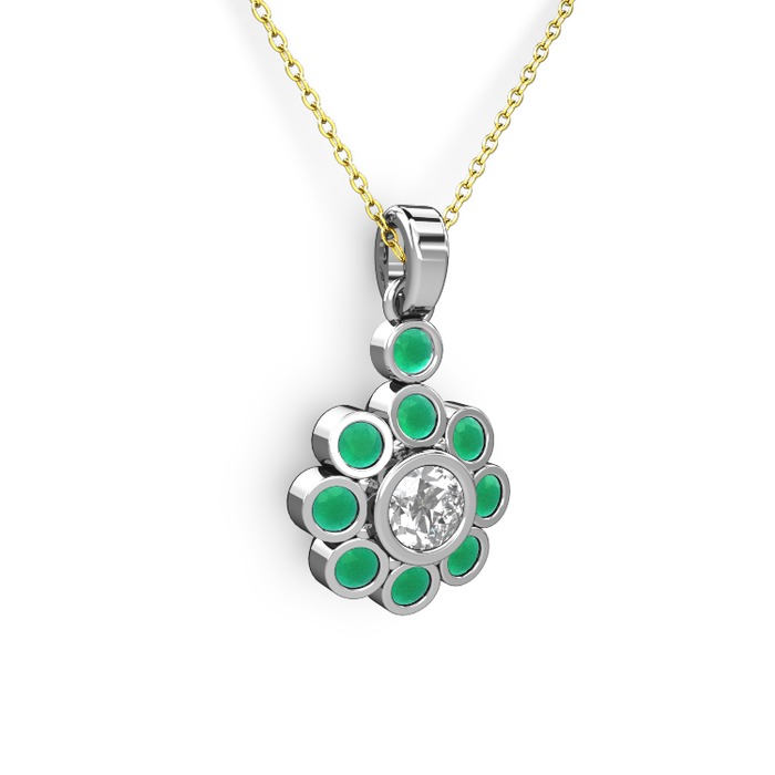 Kök zümrüt ve swarovski 8 ayar beyaz altın kolye (40 cm altın rolo zincir)