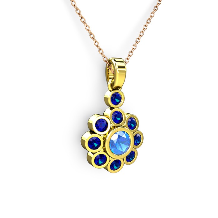 Lab safir ve akuamarin 8 ayar altın kolye (40 cm rose altın rolo zincir)