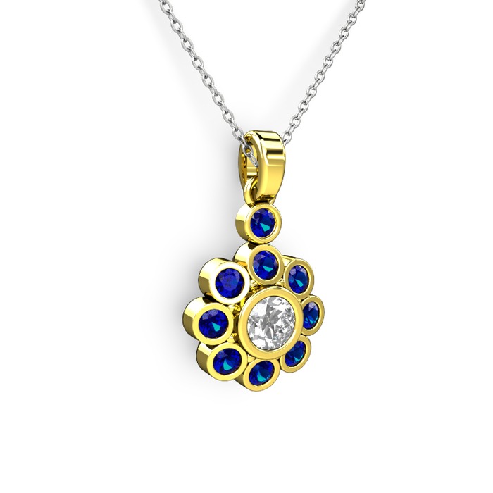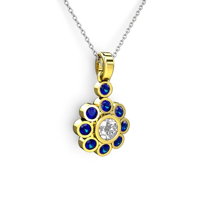 Lab safir ve beyaz zirkon 8 ayar altın kolye (40 cm beyaz altın rolo zincir)