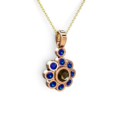 Lab safir ve dumanlı kuvars 14 ayar rose altın kolye (40 cm altın rolo zincir)