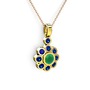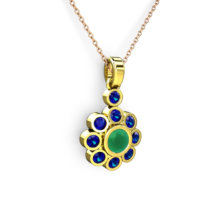 Lab safir ve kök zümrüt 8 ayar altın kolye (40 cm gümüş rolo zincir)